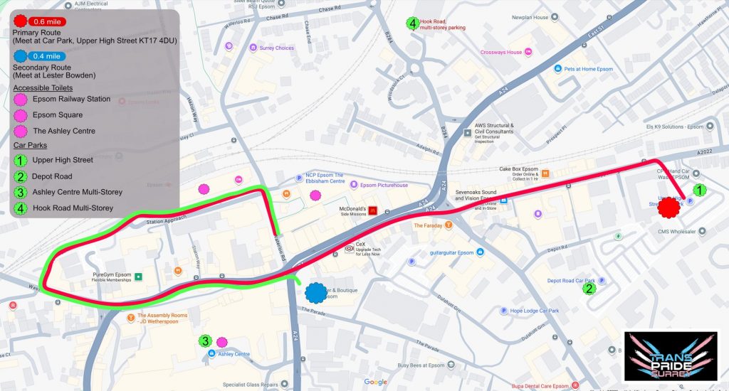 The march will start at 12.30pm and will continue along the high street, past Lester Bowden, past the Clock Tower to the end and round the corner towards Epsom station and then back round to Rhythms where we will have speeches and performers.